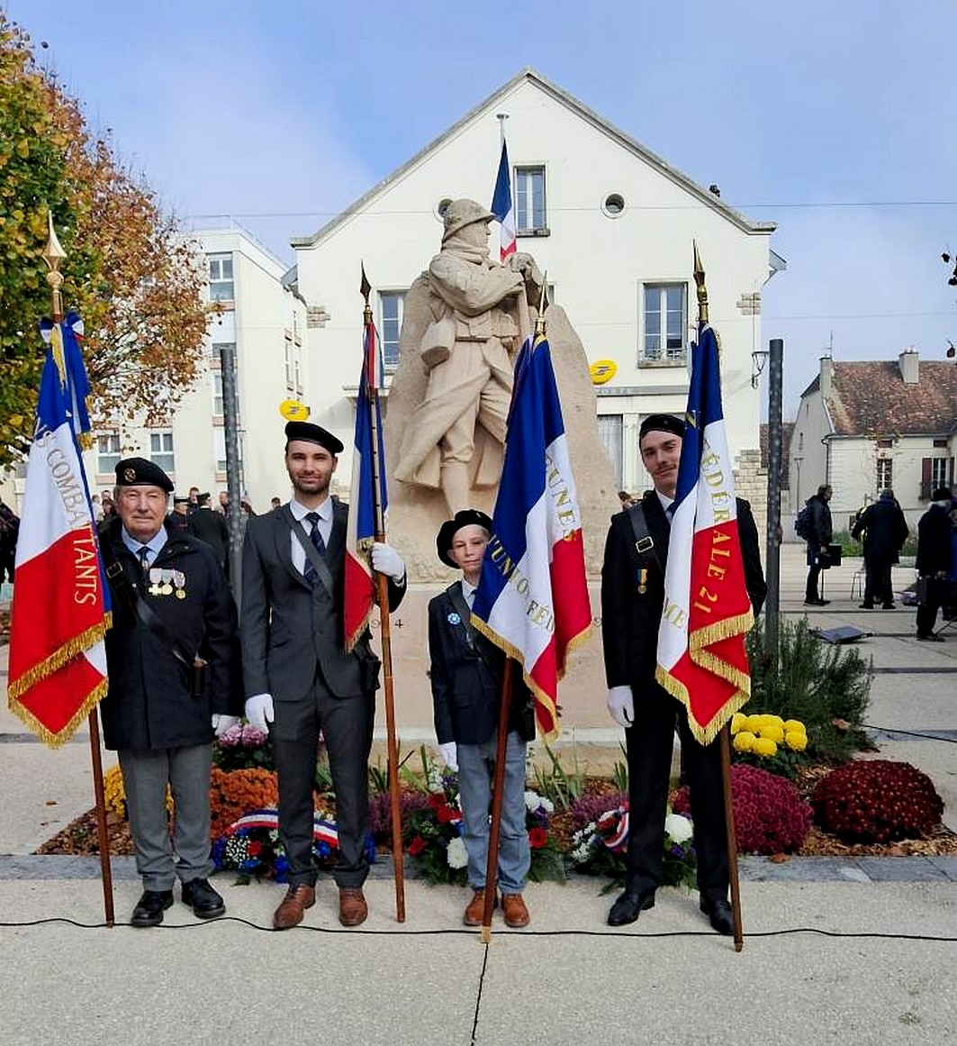 La section de Côte d’Or a été créée en 2025 afin de réunir sous un même idéal la promotion de la mémoire et du civisme. Avec solennité, le 11 novembre 2025, lors de la cérémonie commémorative à Mirebeau-sur- Bèze, le jeune Auguste ROUGET s’est vu confier le drapeau de la section qui sera ensuite itinérant entre toutes les sections qui accueillent des jeunes. Actuellement, le Groupement Sud, Blaizy-Bas, Précy-sous-Thil et Châtillon-sur-Seine.