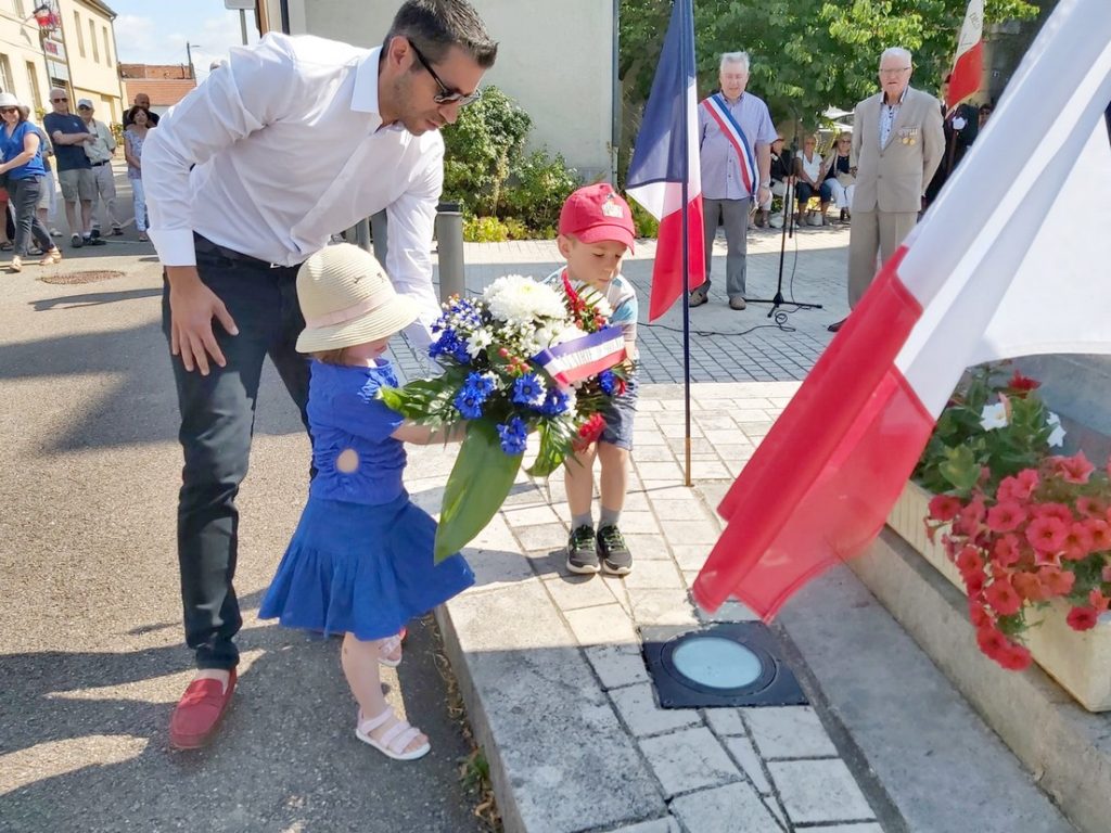 Un instant particulièrement émouvant fut le dépôt de la gerbe, effectué par Noémie et Robin, deux jeunes enfants de Perrigny. Ce geste fort, posé par les mains de notre jeunesse, incarne parfaitement la transmission du flambeau mémoriel. Il est la preuve que le souvenir n’est pas seulement un regard vers le passé, mais aussi un pont vers l’avenir, assuré par les générations futures.